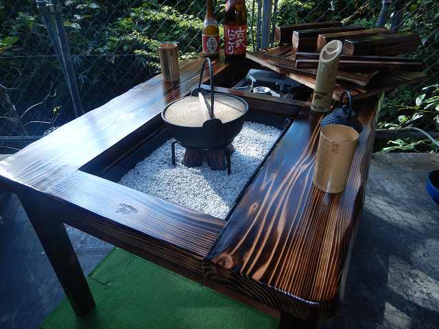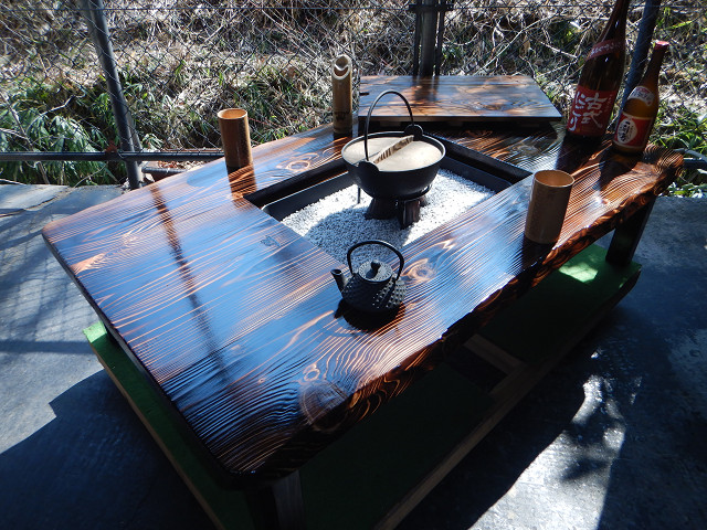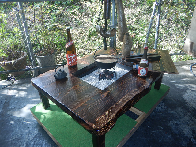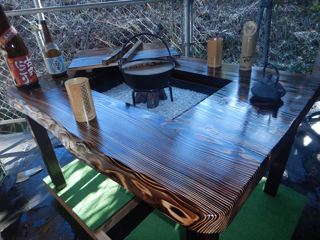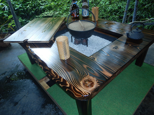 YouTube「おやじ囲炉裏飯」ご覧の囲炉裏テーブルの製作は私です。