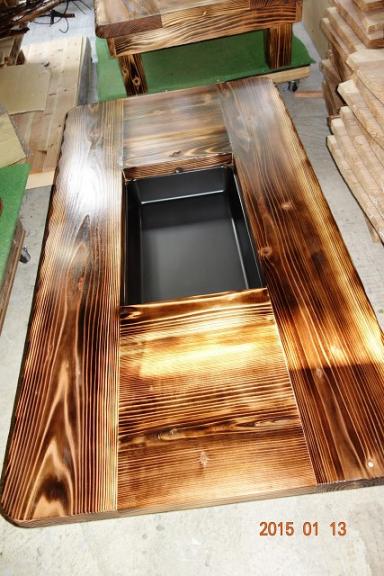 <ホ-ム・オーダー>囲炉裏テーブルEー107の類似製作.900程度x700程度x350H.炉開口=375x580x天板-135H.炉蓋と角棒2本を付属.脚折れ式完成品