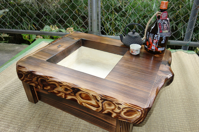 超コンパクト置き囲炉裏・土佐漆喰の炉寸法=660~610L程度x520Wx200H(静岡県三島市のSM様)大変素晴らしい囲炉裏で感激しました。天面といい小口といいとても良い木味が出ています、炉には一目惚れです!終わらせてはダメです!応援致します、大変に良い品物を有難うございました。昨年に続き置き囲炉裏2台目もご購入頂き,心優しい感激する評価まで頂き大変な励みを受け取りました、有難う御座いました、重ねてお礼申し上げます。