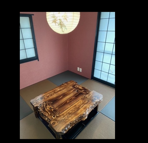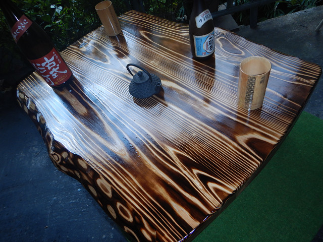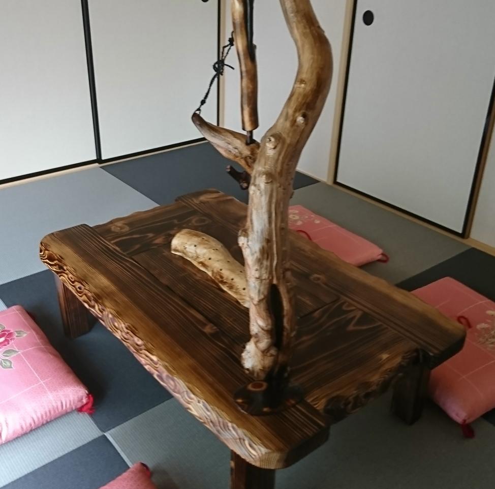 この度は発送、炉蓋の製作及び串立てのサービスまで誠にありがとうございました。実は妻には内緒で購入しており、到着当日にびっくりさせようと思っていたのですが、びっくりどころか「高級旅館みたい」と大変な気に入りようでとても喜んでいました。私もあまりのかっこよさ、自然の造型美とそれを活かす高橋様のセンスに感動しました。たしかに、このテーブルはこの足の高さで使用するのが一番美しいと思いました。 我が家は積水ハウスで建築したのですが、家を見に来た営業も感動しており、何枚も写真を撮っていき、「新しいお客様の和室の使用例のサンプルにさせてください」「この座卓はどちらで購入されたのですか?」と興奮していたのでおこぜ夢工房様を紹介させて頂きました。