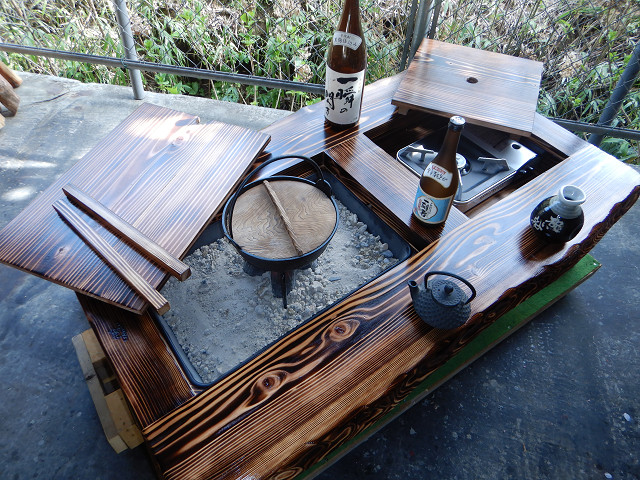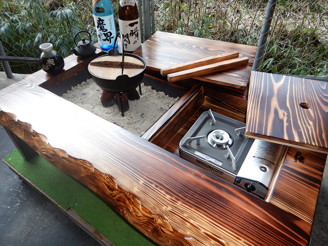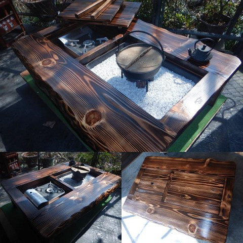 <ホ>置き囲炉裏コンパクト800Lx830~850W程度x190H完成品炉蓋とコンロ等使用時の上げ底板を付属(静岡県三島市のSM様)また何か面白い物があればご連絡をお願いします。 今後ともよろしくお願いいたします。上記のコメント頂きました。有難う御座いました。