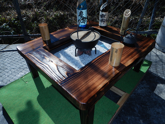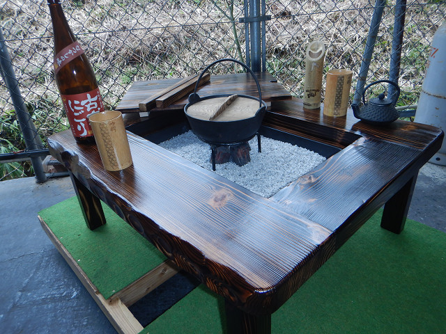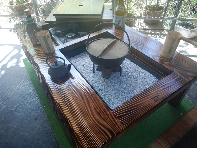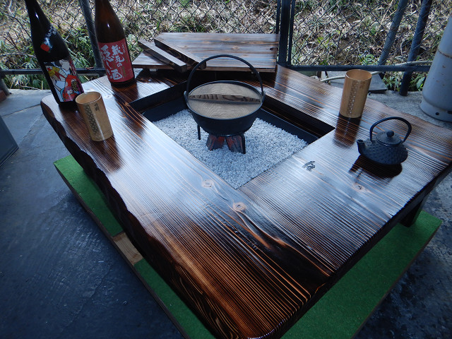 3月に民宿をオープンするとの事で発送待機中でしたが、完成したとの事で3/3発送完了しました。この囲炉裏テーブルが要と成り益々繁盛する事を龍馬の国より心より願っております。 又、同行された友人の方々と究極の晩餐をお楽しみ頂くと共によろしくお伝え下さい。 遠路の所へわざわざおいでの上ご購入頂きましてありがとうございました。