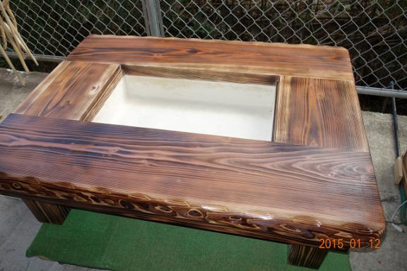 <ホ>囲炉裏テーブル.寸法=幅1,030程度x奥行770程度X高さ355.炉開口寸法=375x580X天板-130H.天板厚さ=45(完成品).炉蓋・コンロ等使用時の上げ底兼用蓋と角棒2本を付属 (東京都中野区のKS様)イメージ通りのものです、この冬から身も心も暖かく過ごせそうです、大切に使わせて頂きます。喜んで頂ける事が唯一の励みで凄く嬉しいです。有難う御座いました。