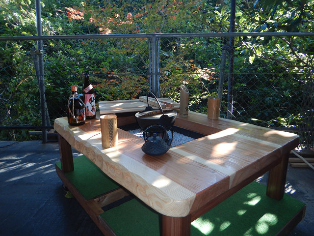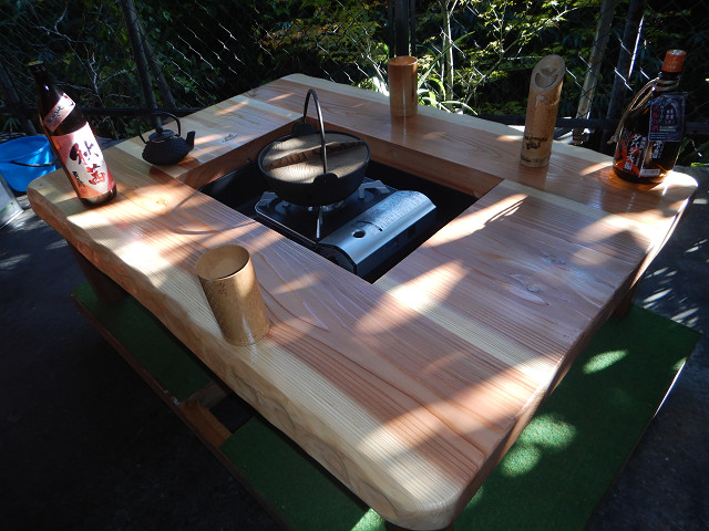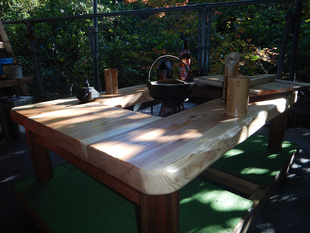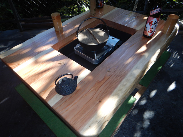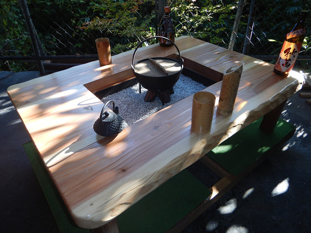 囲炉裏テーブル「E-651」白木余裕の料理スペース木目を浮き出す加工+水性ウレタンニス4工程仕上げ |