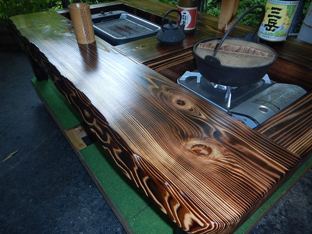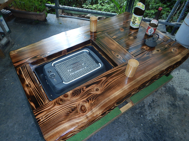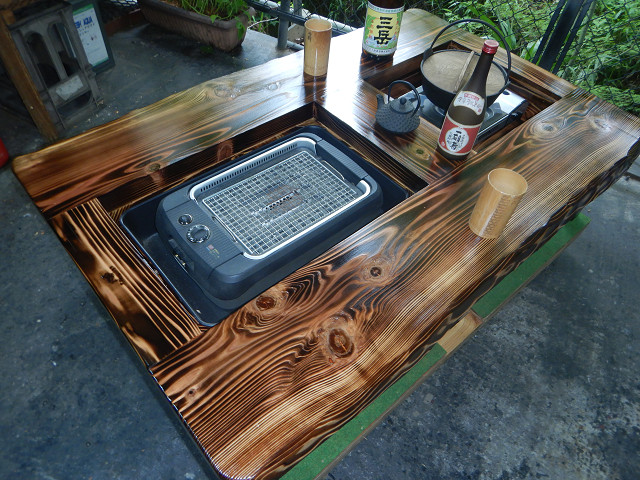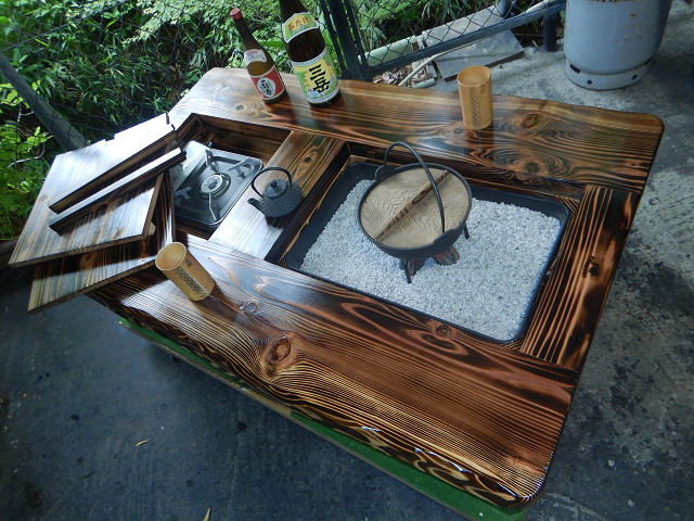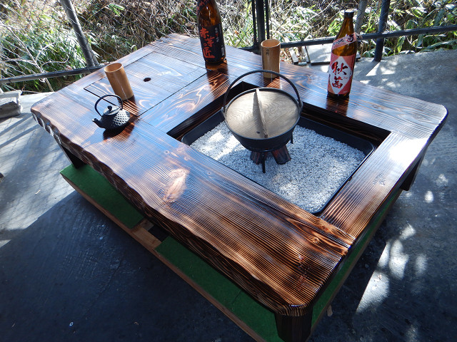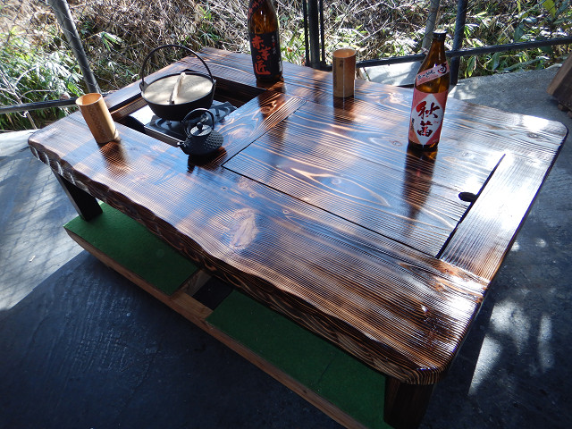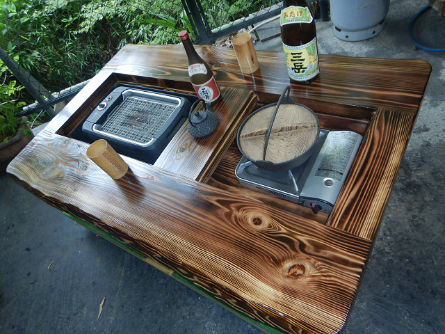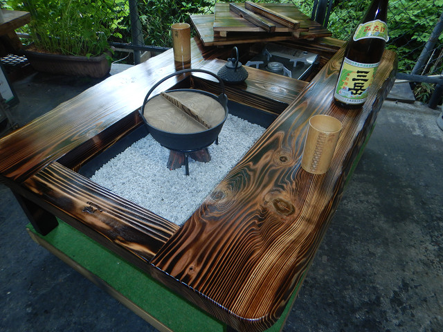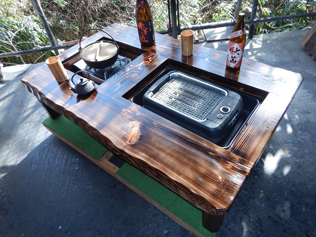 黒炉は炭火や無煙ロースターで焼き物をしながら、凹部はカセットコンロ等で鍋料理も同時に堪能出来る閃き贅沢万能欲張り2炉タイプで何時もの晩餐は更に楽しくなる。