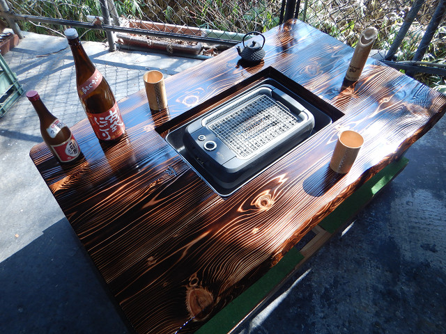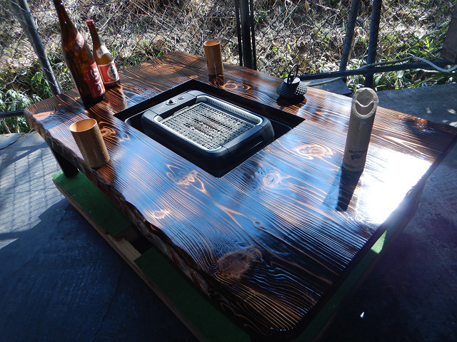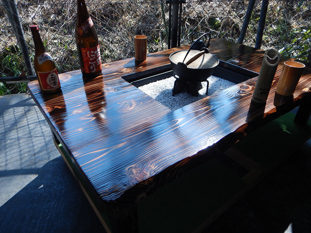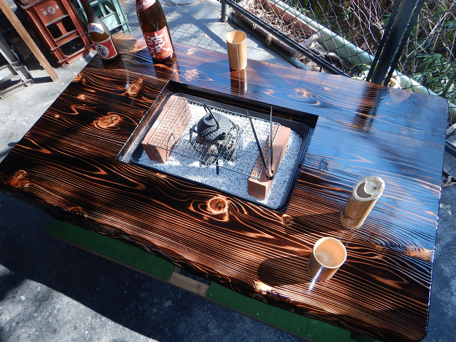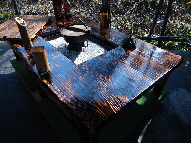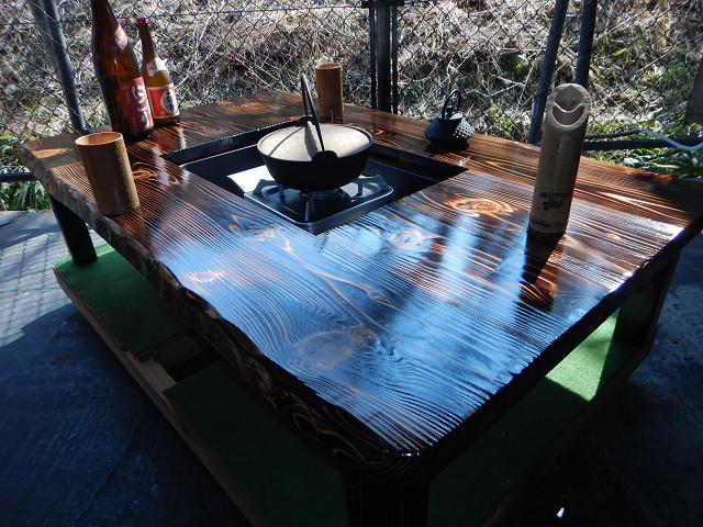 炭火は勿論使用可能・お手持ちのコンロ等 を据え付けて使用も出来る万能囲炉裏