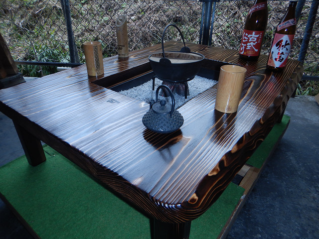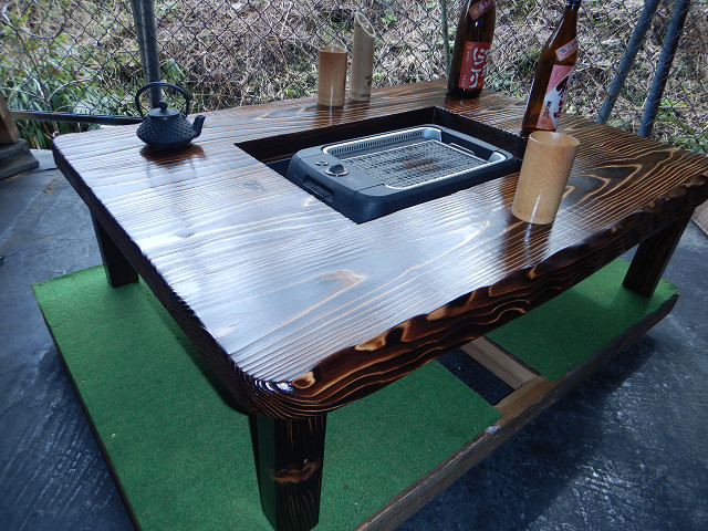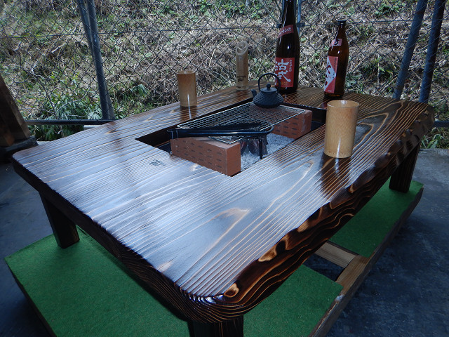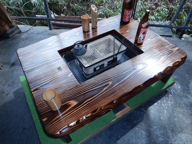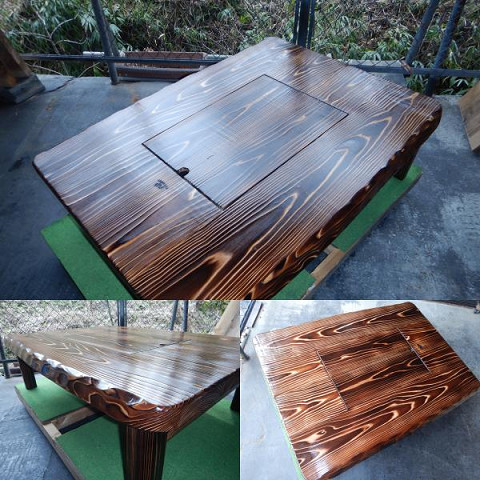 ③通常テーブルとして使用する場合には、「残り火は完全に消えた状態を確認」炉の天に付属の炉蓋を乗せればフラットなテーブルとして使用