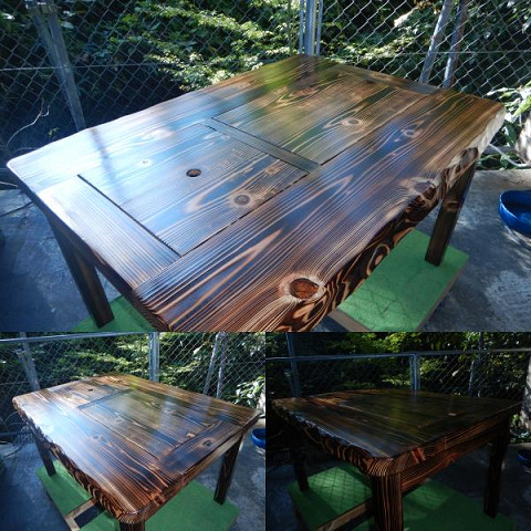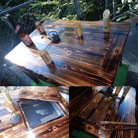 ③通常テーブルとして使用する場合には、「残り火は完全に消えた状態を確認」炉の天に付属の角棒を2本渡して炉蓋を乗せればフラットなテーブルになります。