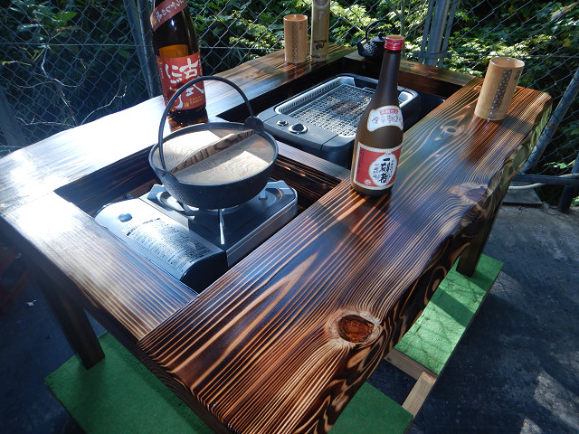 黒炉は炭火や無煙ロースターで焼き物をしながら、凹部はカセットコンロ等で鍋料理も同時に堪能出来る贅沢万能欲張り2炉タイプです。
