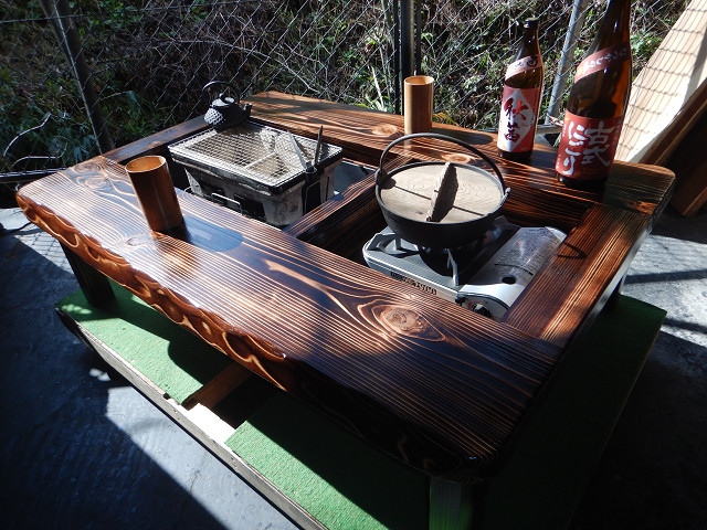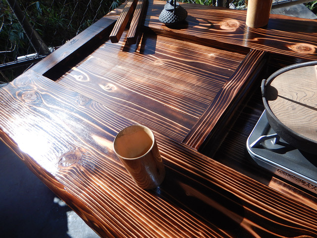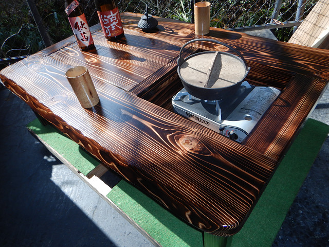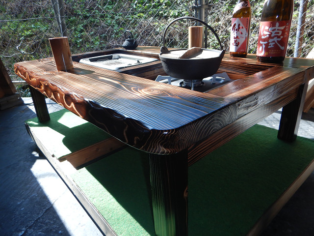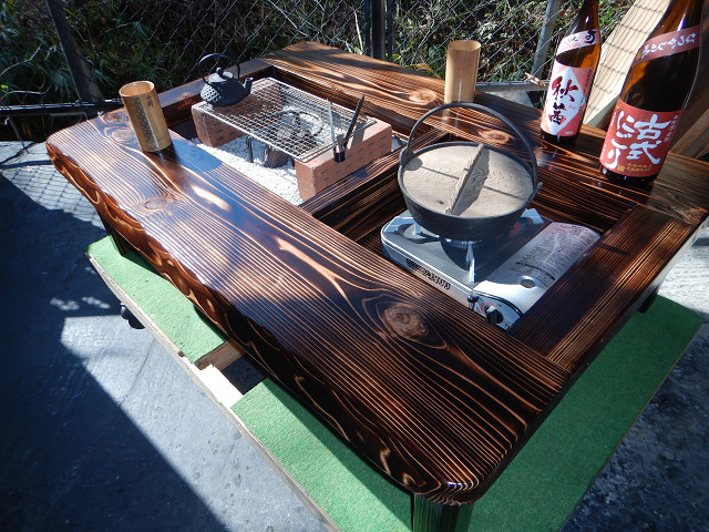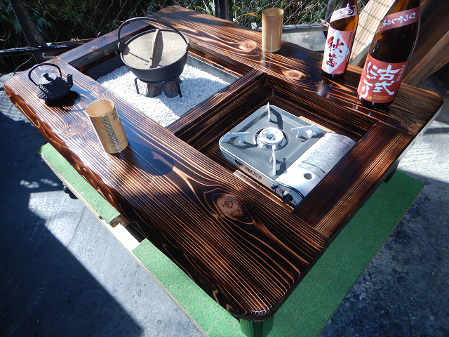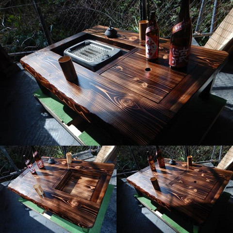 黒炉は炭火や無煙ロースターで焼き物をしながら、凹部はカセットコンロ等で鍋料理も同時に堪能出来る閃き贅沢万能欲張り2炉タイプで何時もの晩餐は更に楽しくなる。