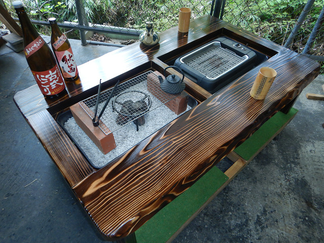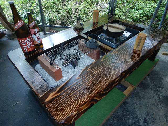 二つの炉は、時の献立による炭火やお手持ちの無煙ロースター・カセットコンロ・IHコンロ?フライヤー等に置き換えて多彩な料理にも同時に堪能出来る、素晴らしい閃き囲炉裏テーブルで、この囲炉裏があれば日々の癒し処として末代お楽しみ頂ける自慢の万能欲張り2炉タイプです。